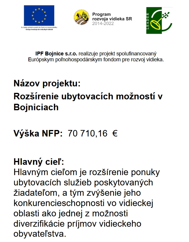 IPF Bojnice s.r.o.Rybníčky 1876/8, 972 01 BojniceIČO: 54538246 | DIČ: 2121714375